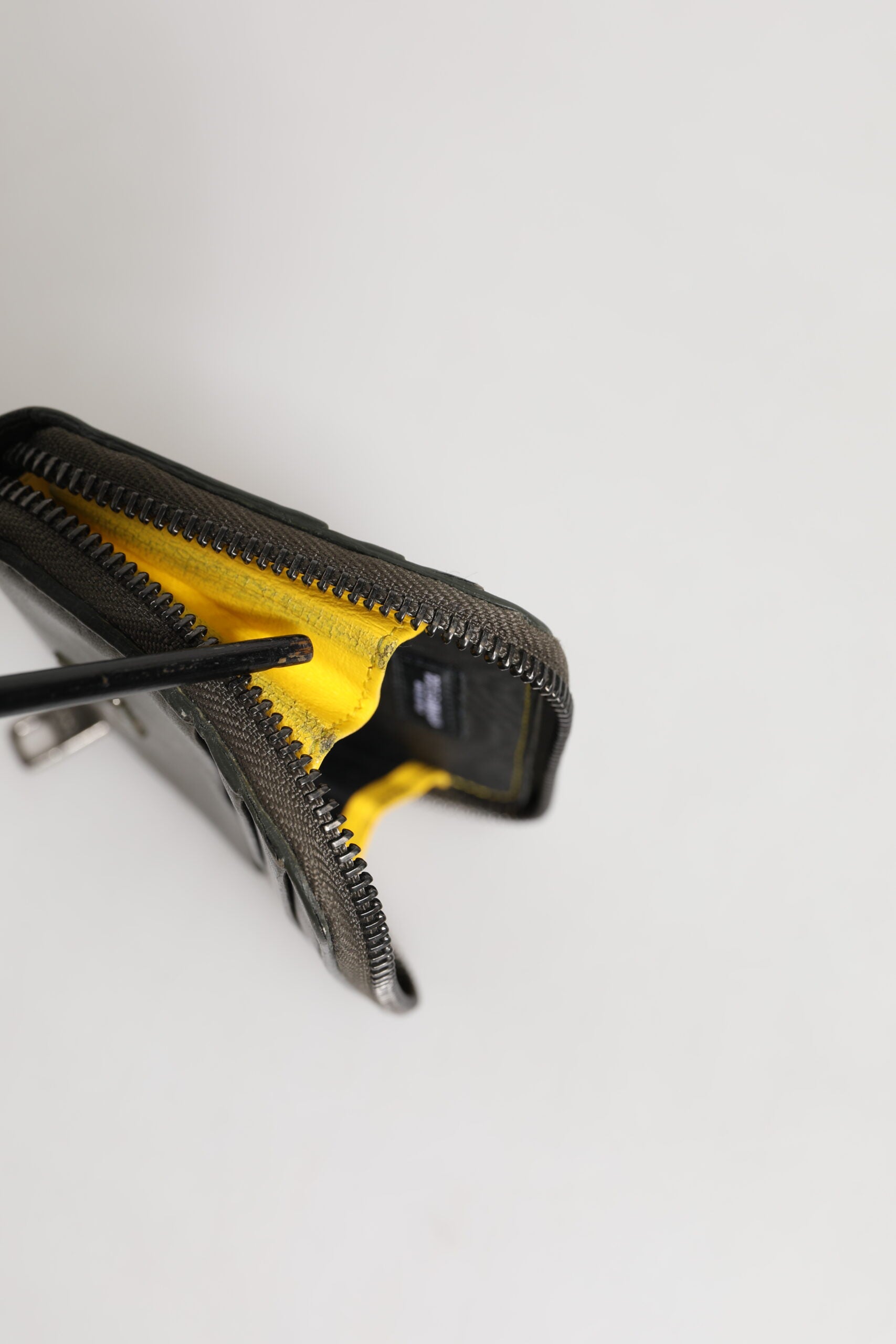 This item is preowned, there are discolorations on the metal logo and on the inner lining of the wallet (see pictures for details).